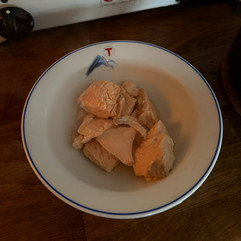 Middagen ble en deilig risotto med laks, sitron og erter. En helt super middag å lage på en enkel DNT hytte.